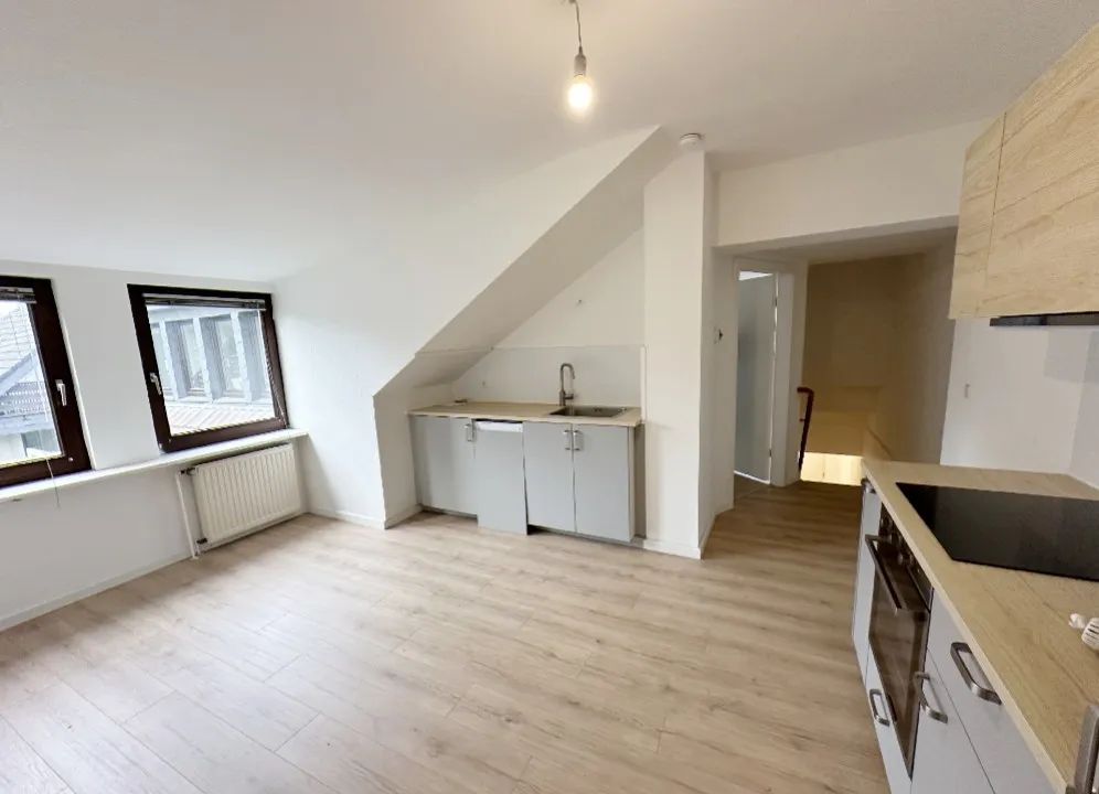 Die frisch renovierte Wohnung ist eine Einliegerwohnung im Dachgeschoss eines Zweifamilienhauses. Der Zugang erfolgt über einen separaten Hauseingang, so dass man das berühmte Haus-im-Haus-Gefühl hat. Die Aufteilung ist ideal für ein oder zwei Personen ohne Haustiere. Über die Treppe erreichen Sie eine kleine Diele mit Zugang zum Schlafzimmer und zur Küche. Hinter der Küche geht […]