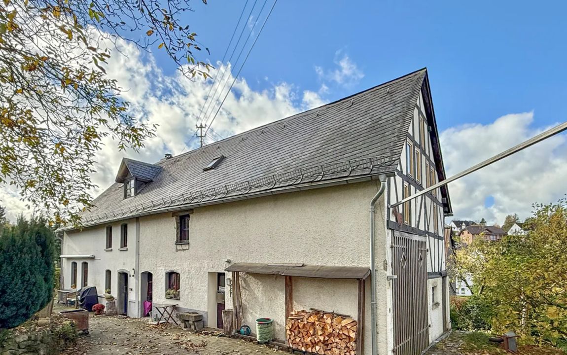 Das ehemalige Bauernhaus wurde ca. um 1900 errichtet und in den 1970er Jahren um einen Anbau erweitert. Es verfügt im Obergeschoss z.T. über eine Fachwerkkonstruktion mit sichtbarem Gefache. Die umfassenden Wände im Erdgeschoss sind gemauert und im Teilkeller befinden sich Bruchsteinwände. Über ein zentrales Treppenhaus gelangen Sie zu den jeweiligen Wohnungen im Erd- und Obergeschoss. […]