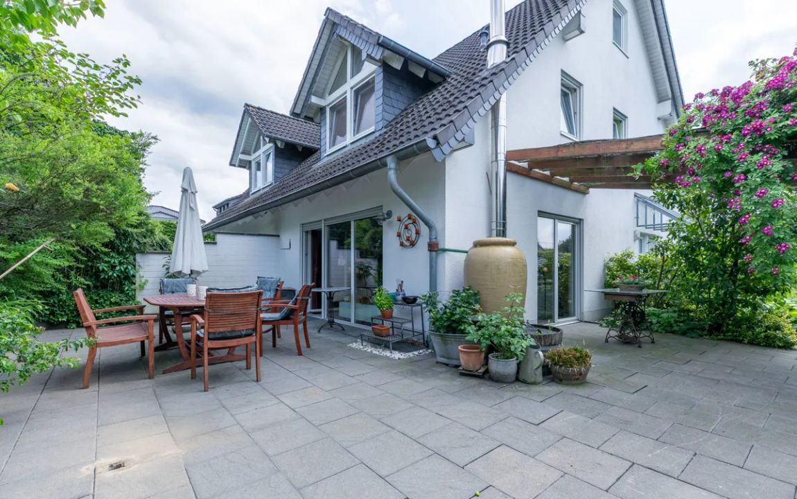 Die schicke, großzügige Erdgeschosswohnung befindet sich in einem freistehenden Vierfamilienhaus. Die Wohnung wurde 2016 von den Eigentümern umfassend modernisiert und präsentiert sich mit einer gehobenen Ausstattung. Herzstück der Wohnung ist der großzügige Wohn-/Essbereich mit direktem Zugang zur sonnigen Südwest-Terrasse und dem weitläufigen, liebevoll angelegten Garten. Hier lädt ein Gartenhaus mit Pergola zu entspannten Stunden im […]