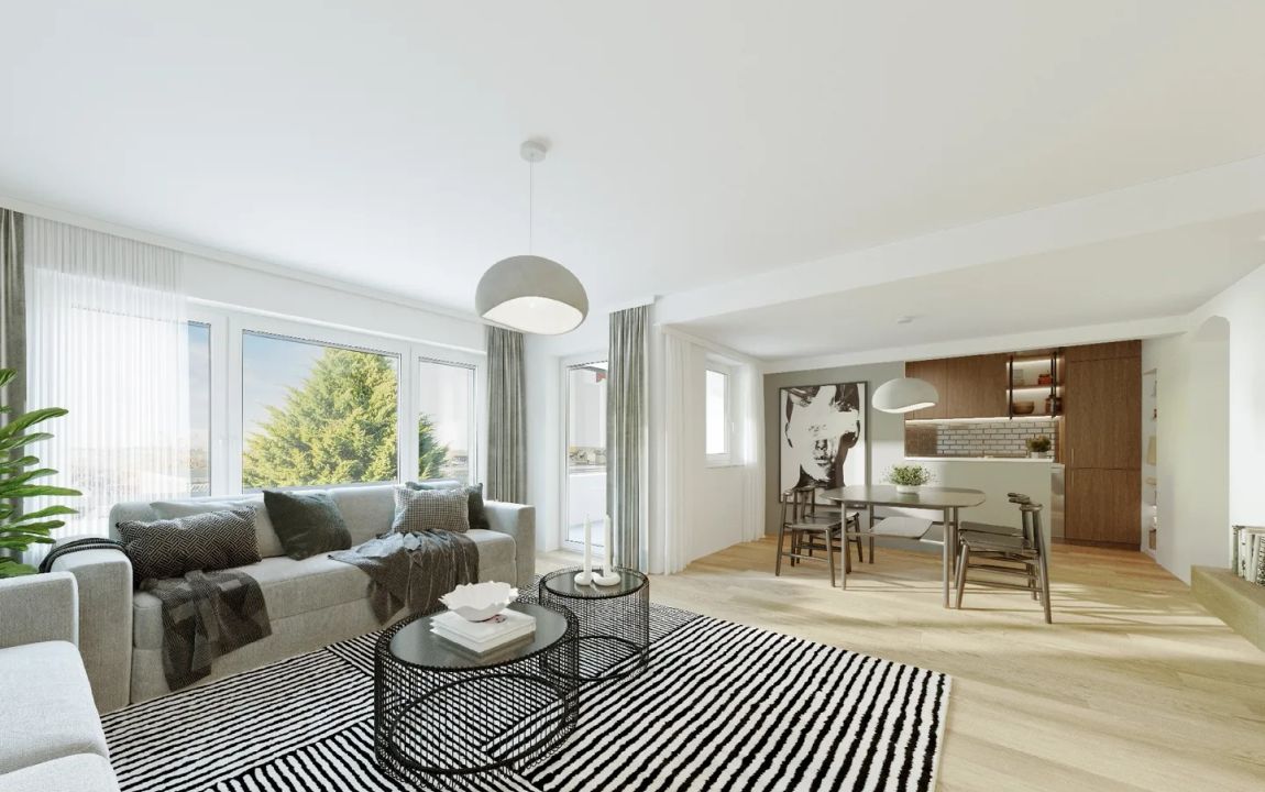 Diese großzügige 4-Zimmer-Eigentumswohnung überzeugt durch ihre gelungene Aufteilung, helle Räume und eine wunderbare Weitsicht. Schon beim Betreten empfängt Sie eine große Diele, die zum Ankommen einlädt und ausreichend Platz für Garderobe und Stauraum bietet. Zwei ähnlich geschnittene Zimmer eignen sich perfekt als Kinderzimmer, Büro oder Gästezimmer. Das große Schlafzimmer bietet Ruhe und Rückzug. Das Familienbad […]