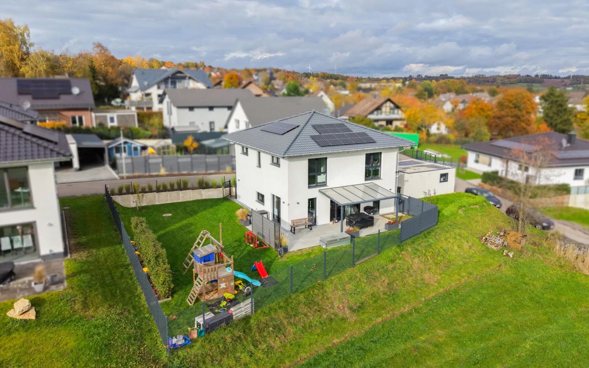Dieses im Jahr 2022 erbaute Einfamilienhaus überzeugt mit zeitgemäßer Ausstattung, durchdachtem Grundriss und einer Wohnfläche von ca. 148 m² auf einem Grundstück von 730 m². Die Kombination aus energieeffizienter Haustechnik, modernem Design und einer idyllischen Lage mit herrlicher Aussicht macht dieses Zuhause besonders attraktiv. Das großzügige Erdgeschoss besticht durch einen offenen Wohn- und Essbereich mit […]