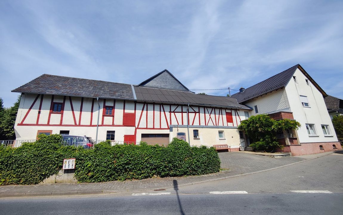 Die Ursprünge dieses Bauernhofes gehen auf das Jahr 1898 zurück. Ca. 1905 wurde vor dem Fachwerkhaus ein massiver Anbau errichtet, der früher als Gaststätte diente und heute zu Wohnraum umfunktioniert wurde. Das Wohnhaus ist mit einem Bruchsteinkeller unterkellert. Von der Küche des Erdgeschosses gelangen Sie auf kurzem Wege in das Wirtschaftsgebäude, welches das EG-Bad, den […]