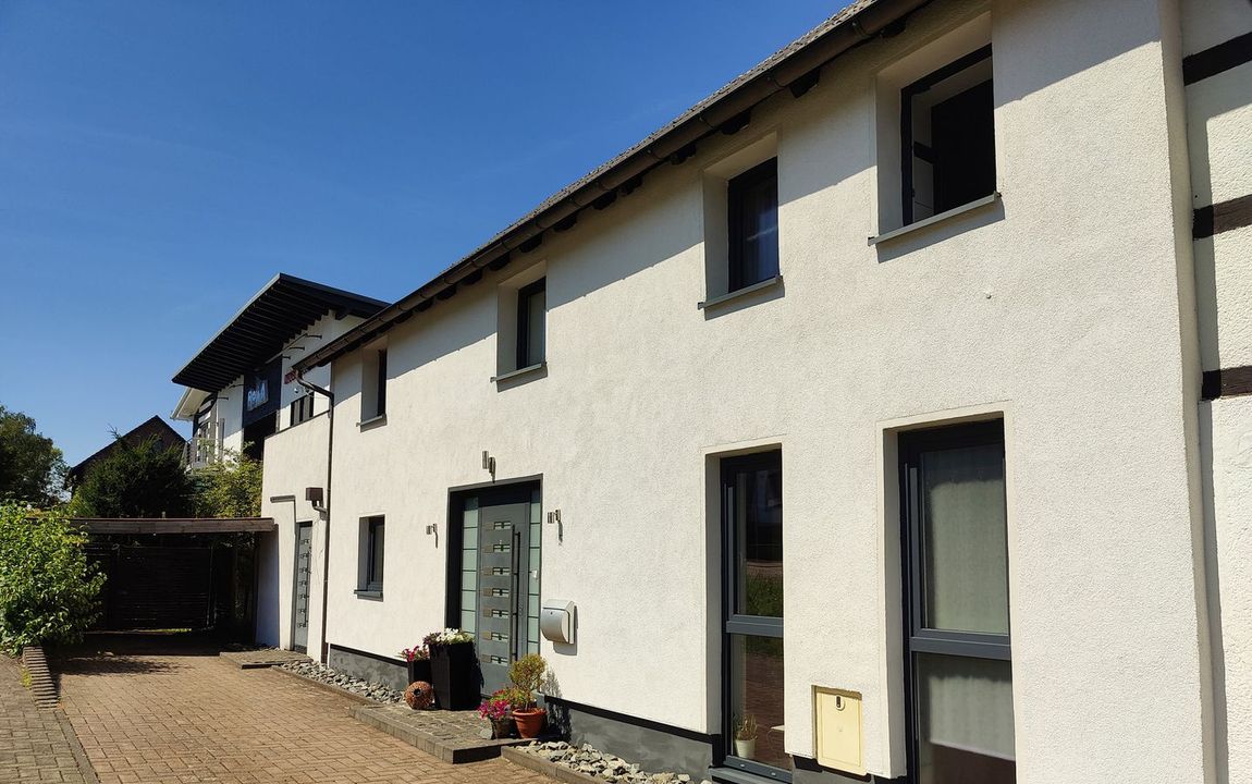 2014 wurde das ehemalige Wirtschaftsgebäude eines angrenzenden Bauernhauses zu einer Doppelhaushälfte stilvoll umgebaut. Dieser linke Gebäudeteil ist nicht unterkellert. Die Doppelhaushälfte verfügt über ca. 188 m² Wohnfläche. Das Erdgeschoss ist offen gestaltet und bietet teilweise unverputzte Betondecken im Industrial Style. Auch der Rest des Hauses wurde geschmackvoll und modern hergerichtet. Vom Wohn- bzw. Esszimmer gelangt […]